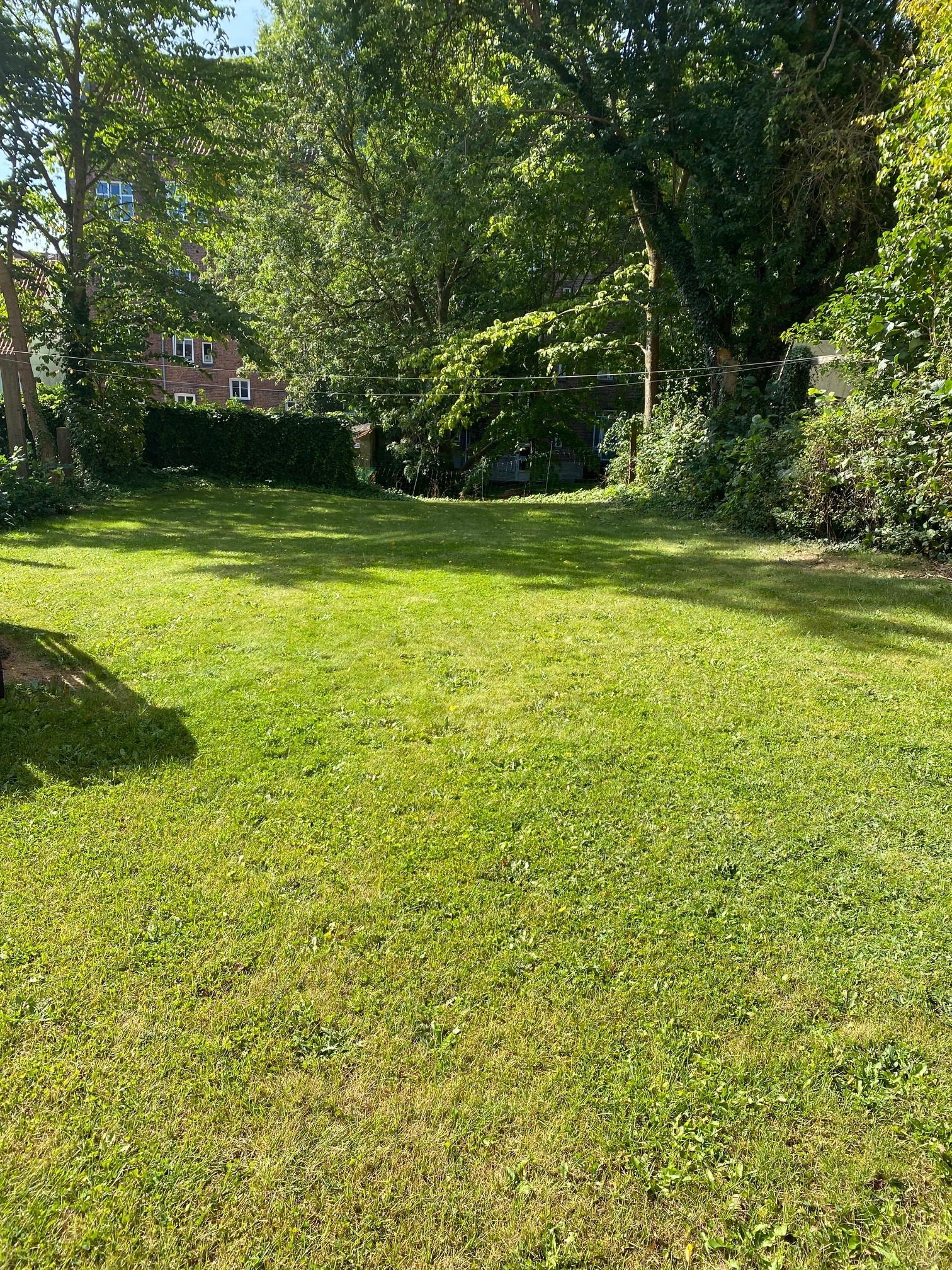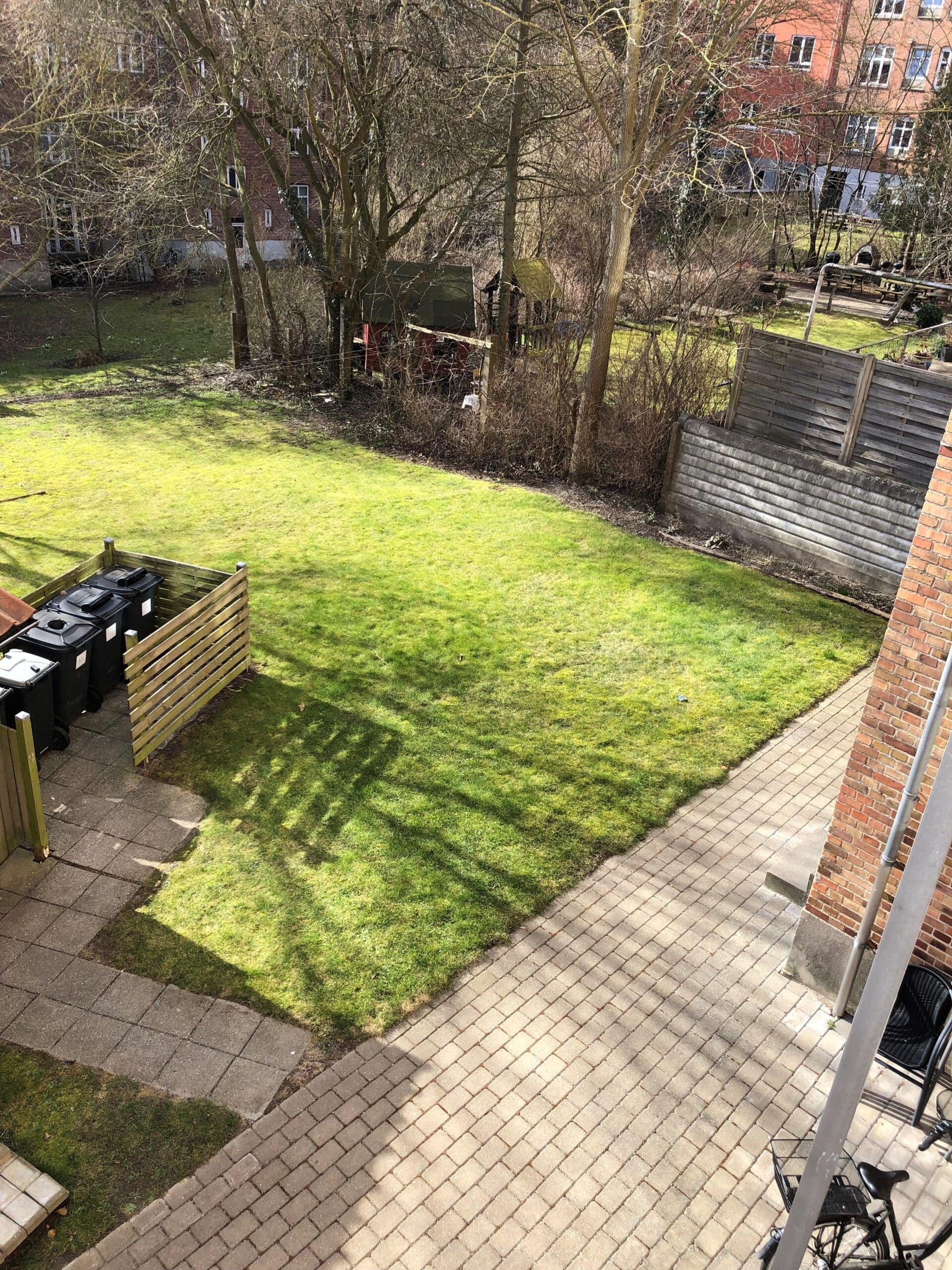 Fra køkkenet er der adgang til det grønne område, hvor der til lejligheden er eget terrasseområde i fælles baggård, cykel- og vaskekælder, samt kælderrum.