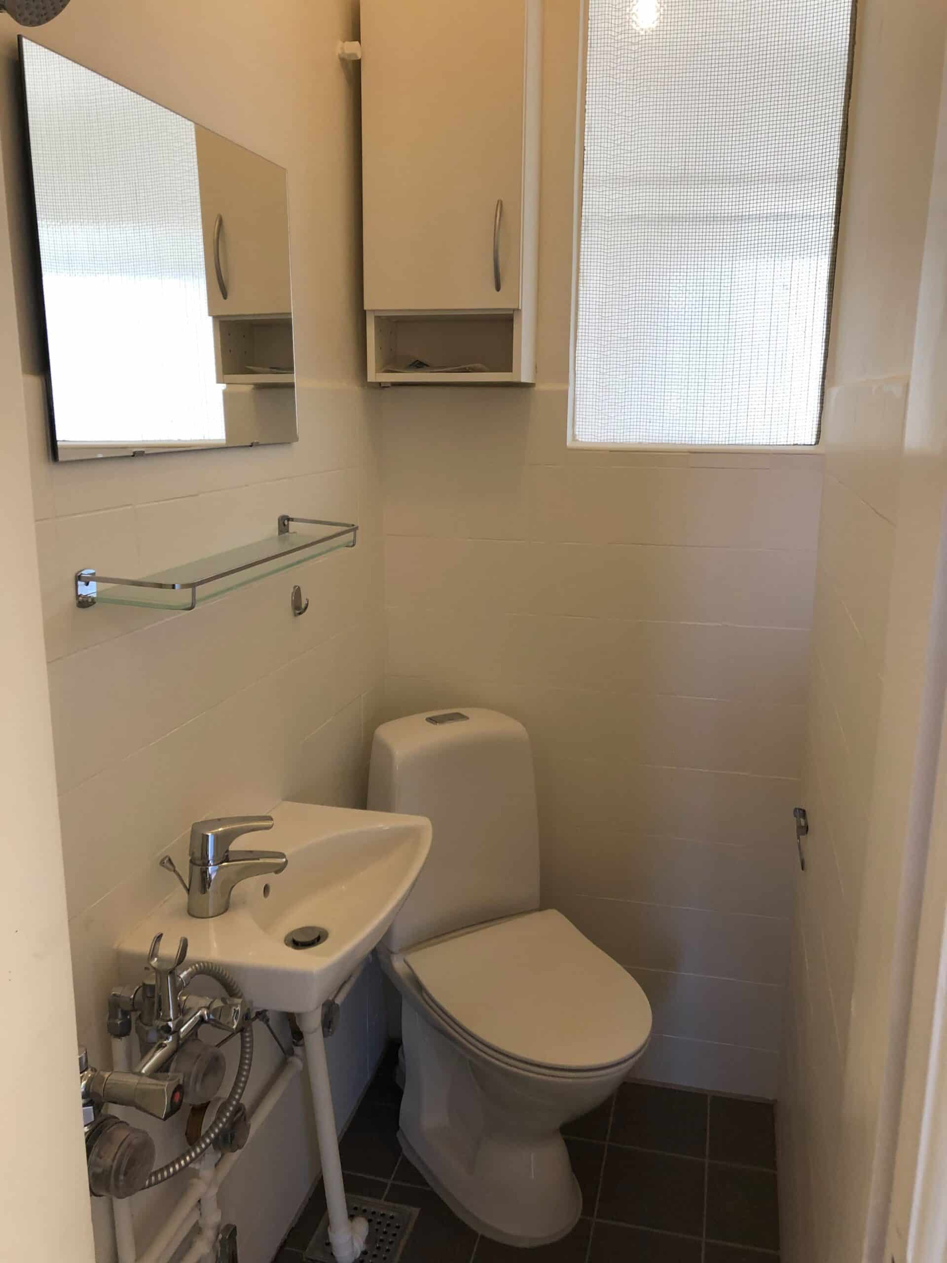 Fordeler gangen åbner op til to værelser, stue, samt nyere køkken med opvaskemaskine, køle-frys og ovn i rustfrit stål. Badeværelset er med nyt væghængt toilet, samt vaskesøjle.